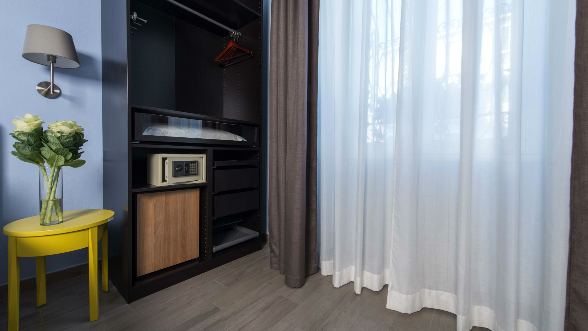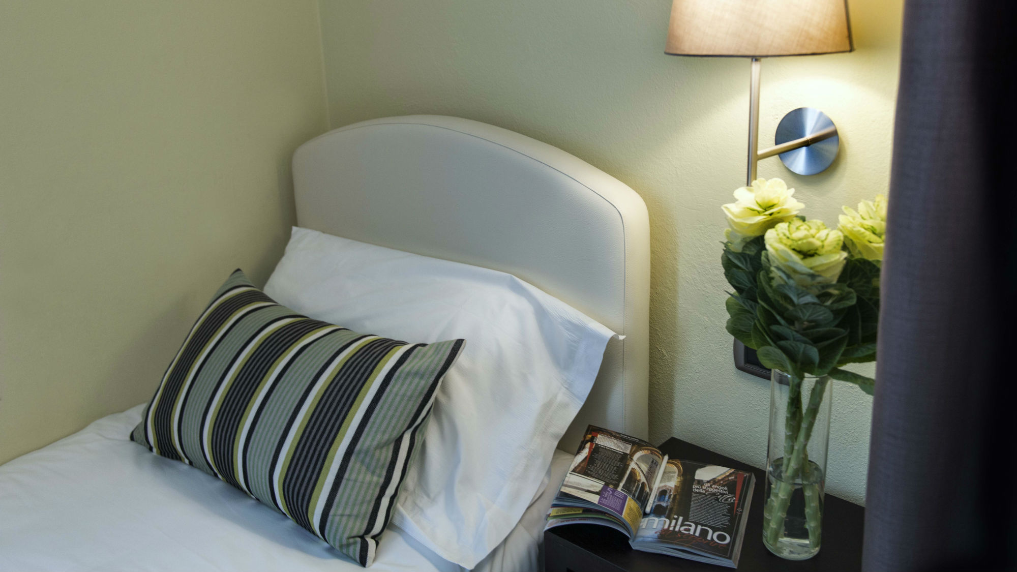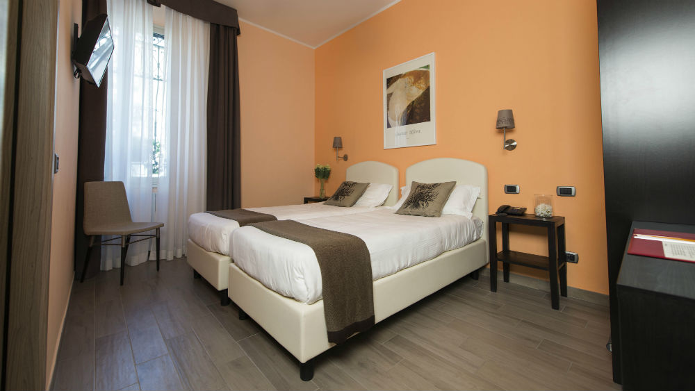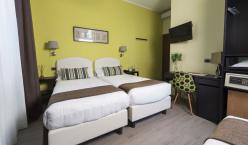 Each of the 30 rooms of this hotel in Milan has a direct dial telephone, LCD TV, air conditioning, mini bar, Wi-Fi Internet,safe-deposit box and private bathroom with hairdryer. The rooms are also soundproofed with double windows.